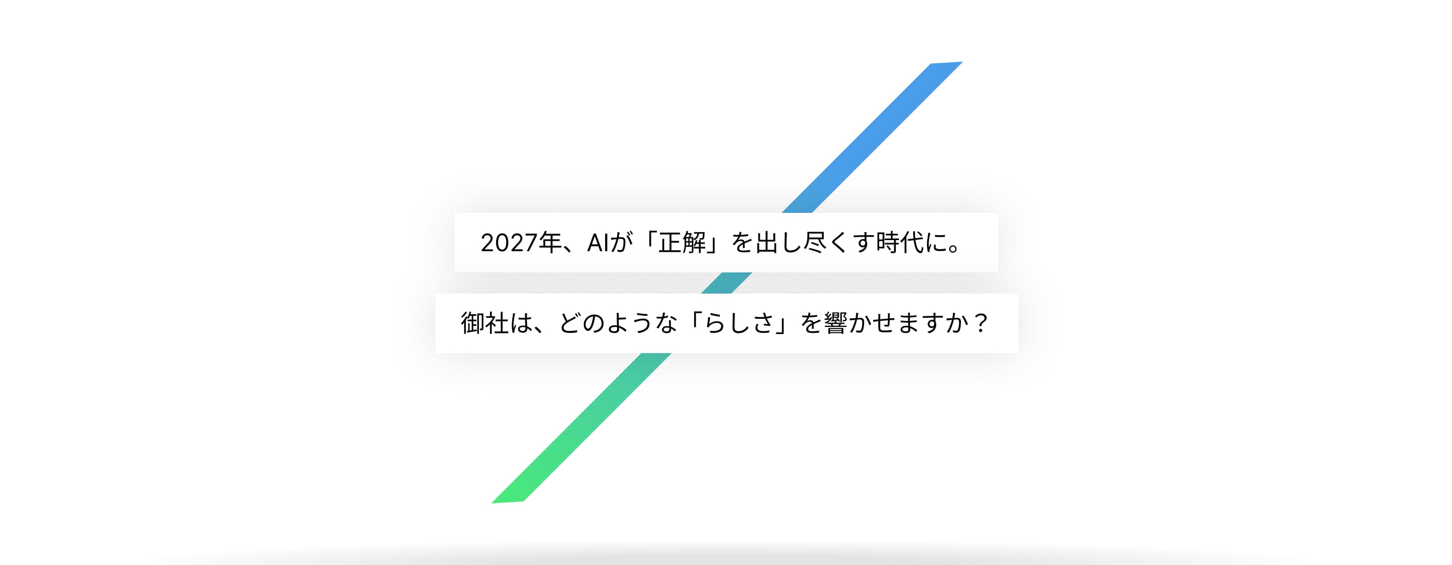 いよいよ「AIが社会インフラ化する2027年」が目前に迫ってきました。今、経営の現場では何が起きているでしょうか。 生成AIの爆発的な普及により、「論理的に正しい戦略」や「整ったクリエイティブ」は、誰でも一瞬で手に入るコモディティ(汎用品)と化しました。世界中の企業が同じAIツールを使い、同じ「効率的な正解」を目指す。その結果、私たちはかつてないスピードで進む「没個性の時代」に直面しています。もはや、合理性だけで勝てる時代は終わりました。つづく